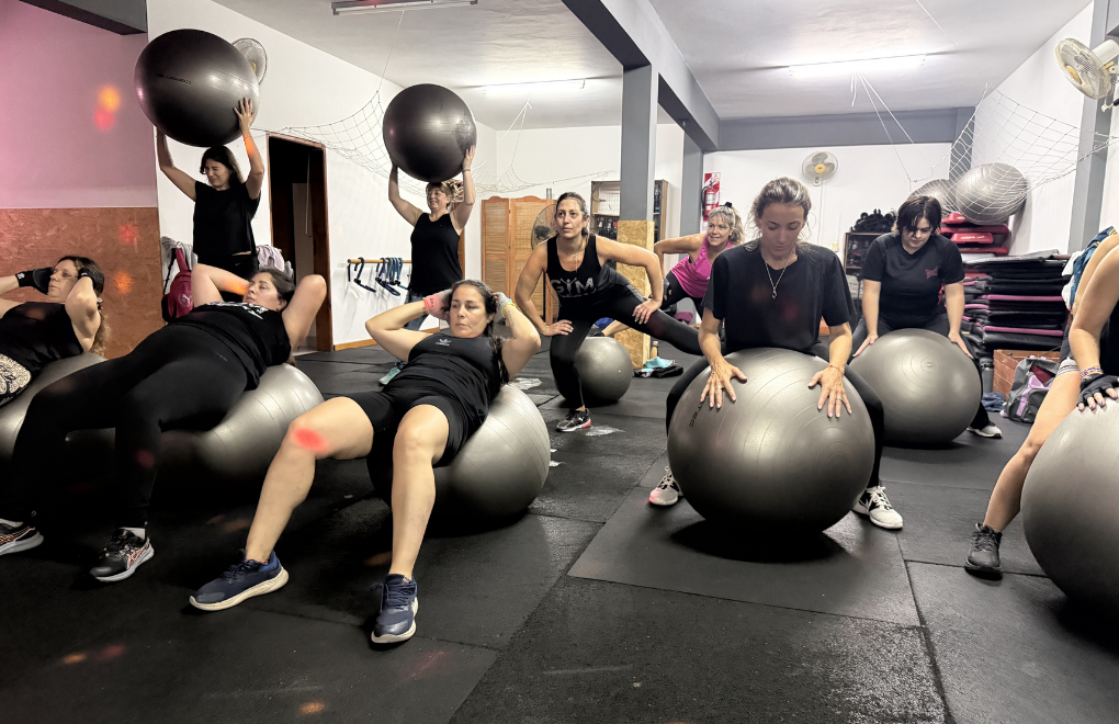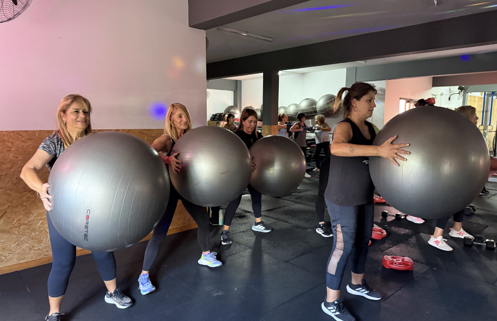 Clase divertida y dinámica con pelota que combina cardio, fuerza y coordinación. Se trabaja todo el cuerpo con movimientos simples y rítmicos, al ritmo de la música.